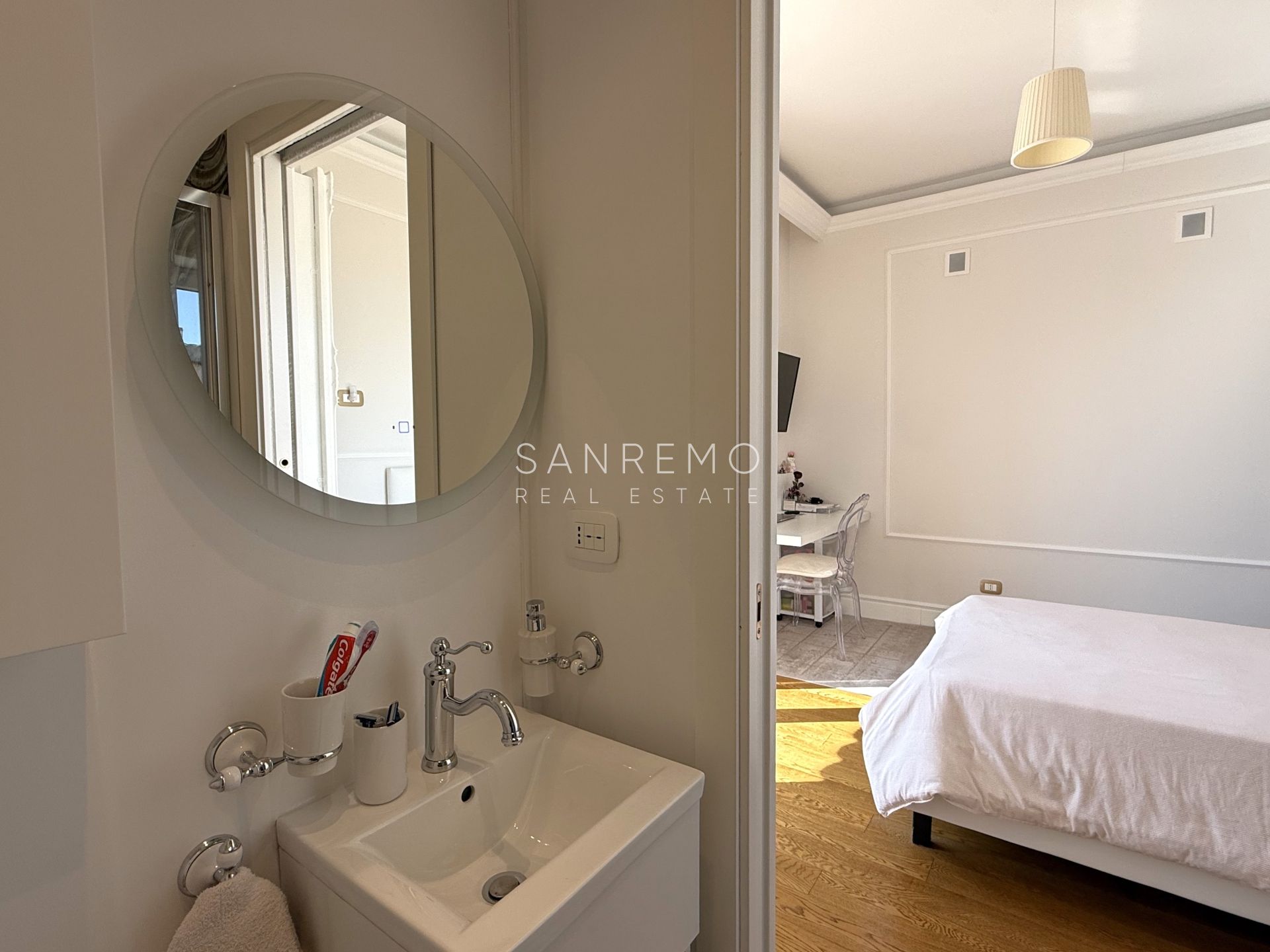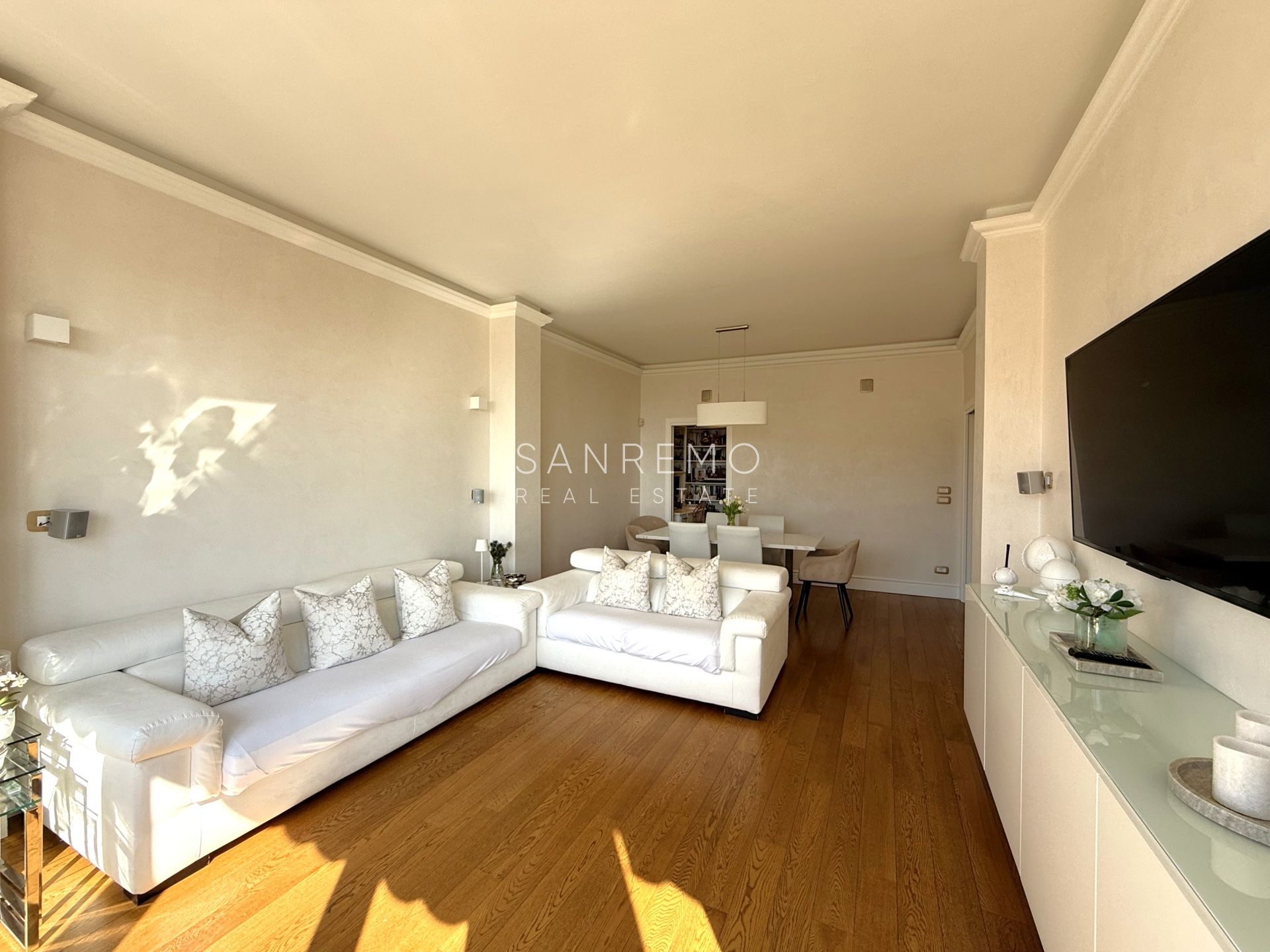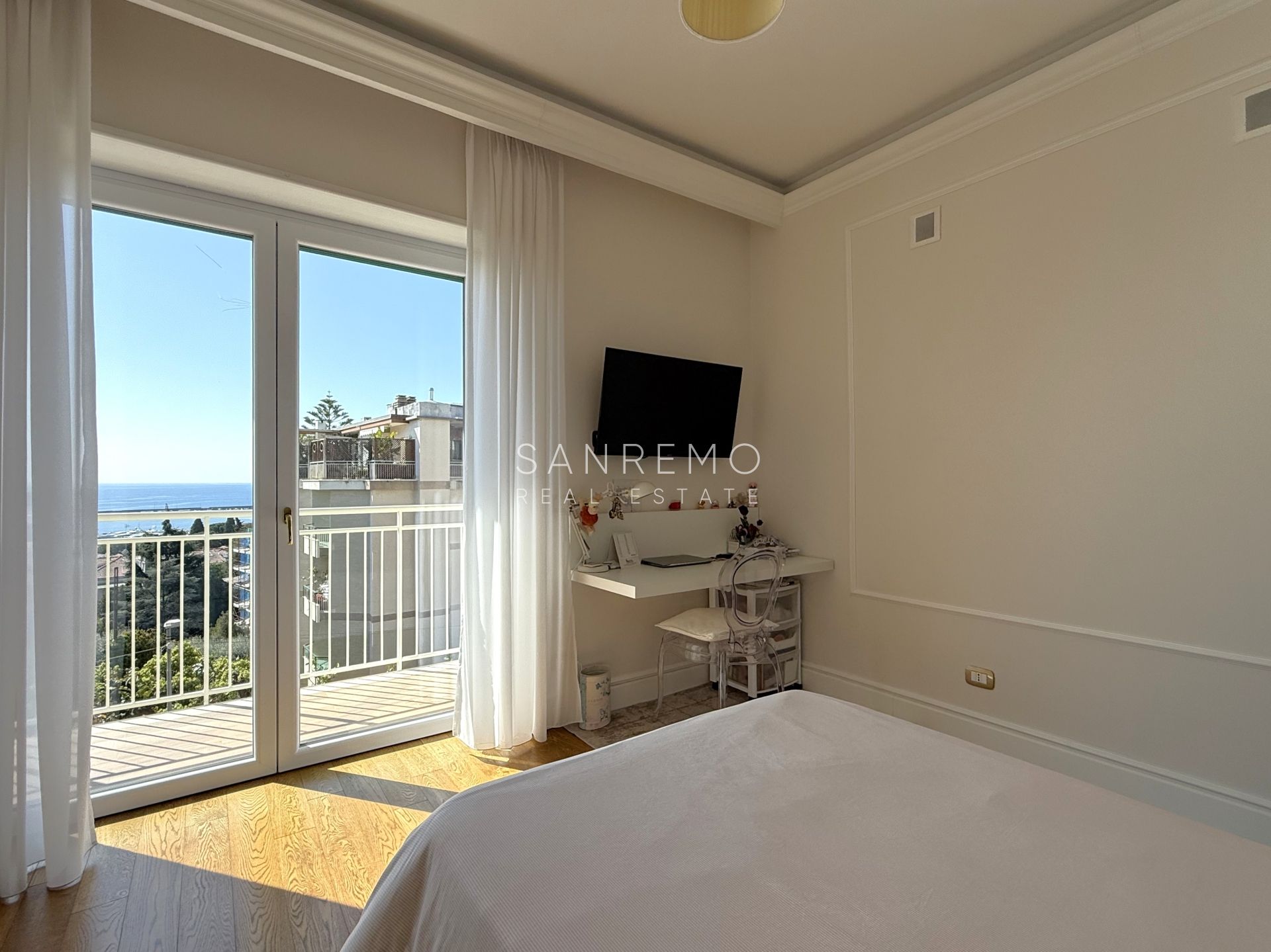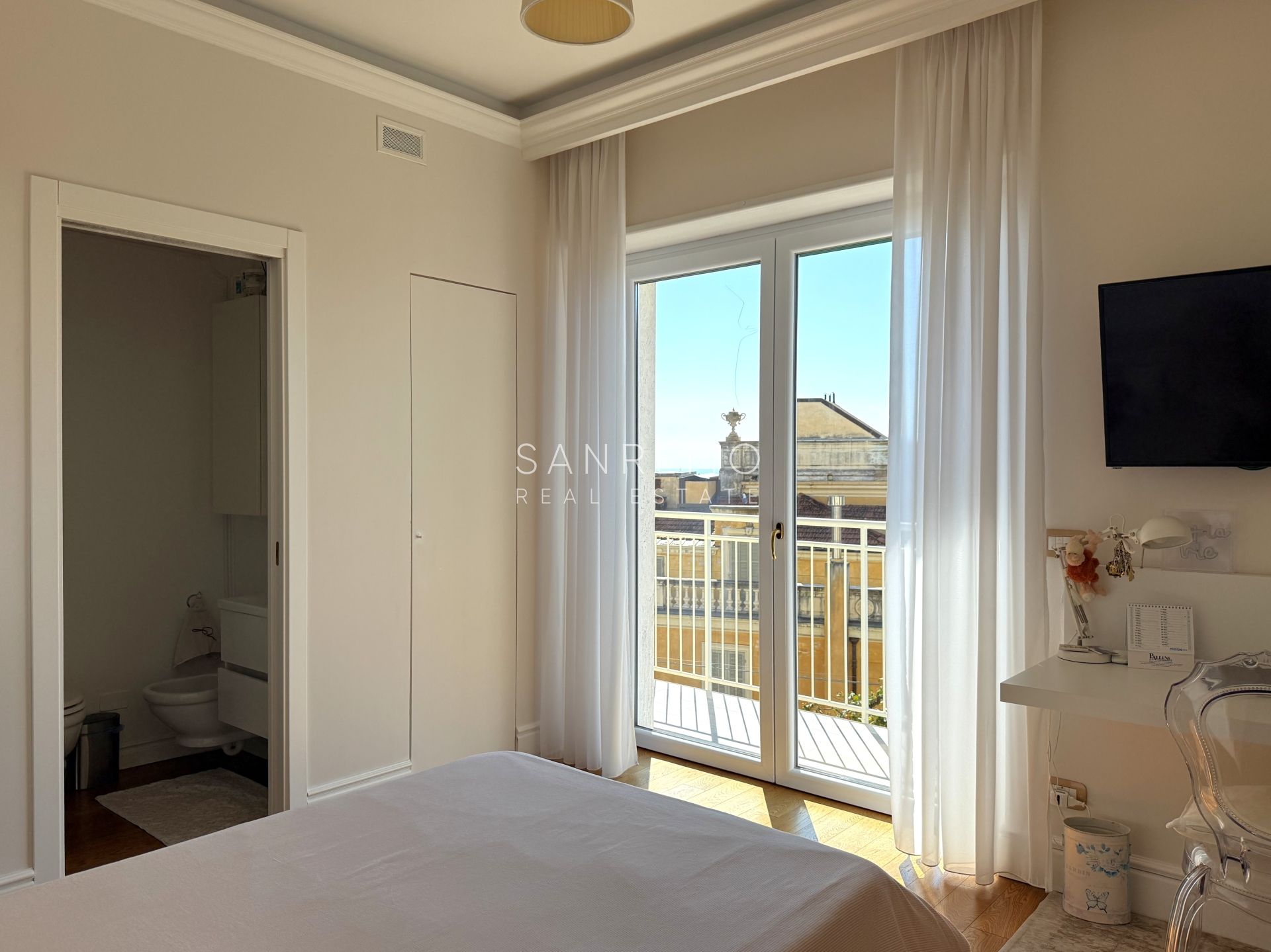 L’immobile si distingue per l’ottima distribuzione degli spazi e la grande luminosità ed è composto da: sala con piccolo studio e bagno di servizio, cucina abitabile di generose dimensioni, 3 camere da letto, 3 bagni (uno per ogni camera). La proprietà dispone inoltre di un piacevole spazio esterno con scorcio di vista mare oltre ad un posto auto di proprietà esclusiva. All'interno del condominio è presente uno spazio comune utilizzato quale deposito bici.