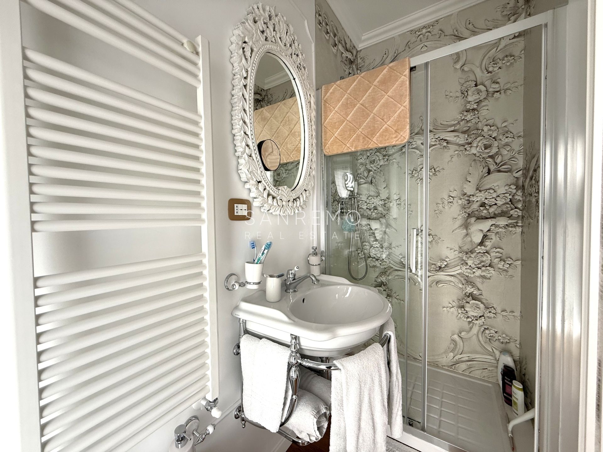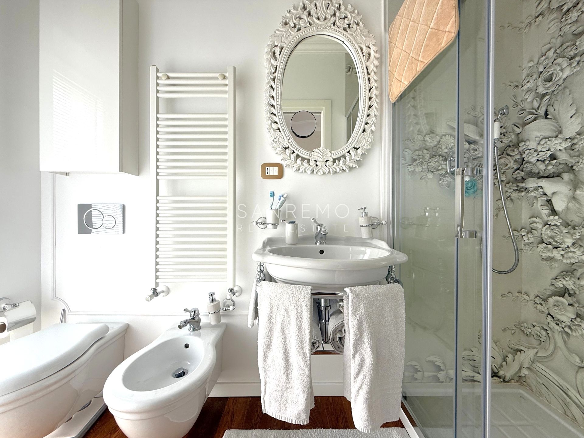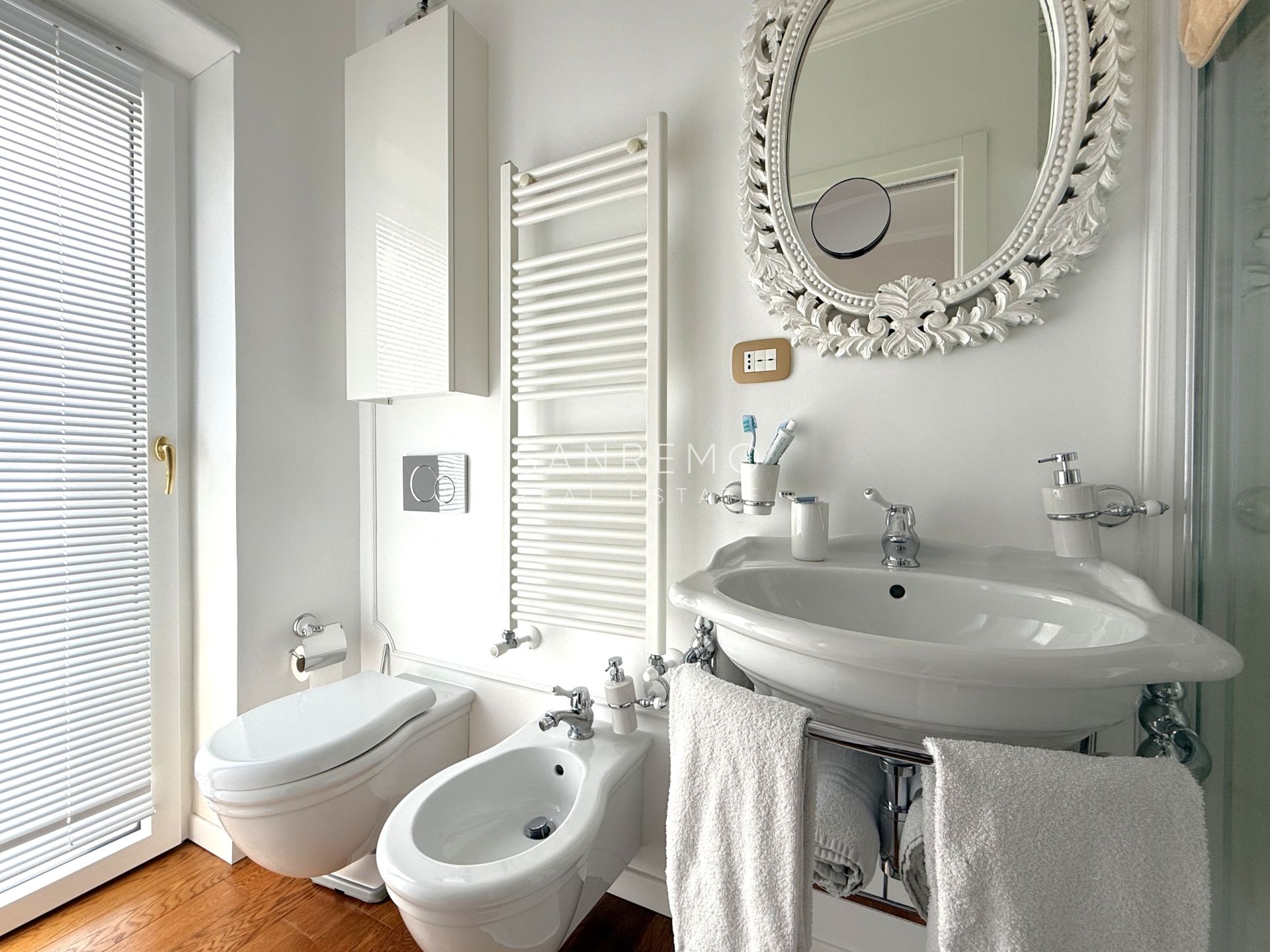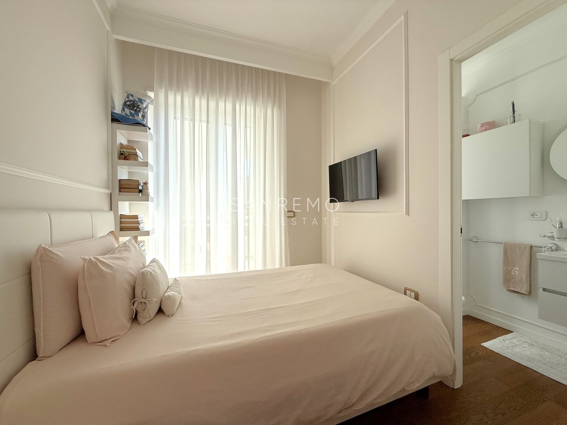 L’immobile si distingue per l’ottima distribuzione degli spazi e la grande luminosità ed è composto da: sala con piccolo studio e bagno di servizio, cucina abitabile di generose dimensioni, 3 camere da letto, 3 bagni (uno per ogni camera). La proprietà dispone inoltre di un piacevole spazio esterno con scorcio di vista mare oltre ad un posto auto di proprietà esclusiva. All'interno del condominio è presente uno spazio comune utilizzato quale deposito bici.