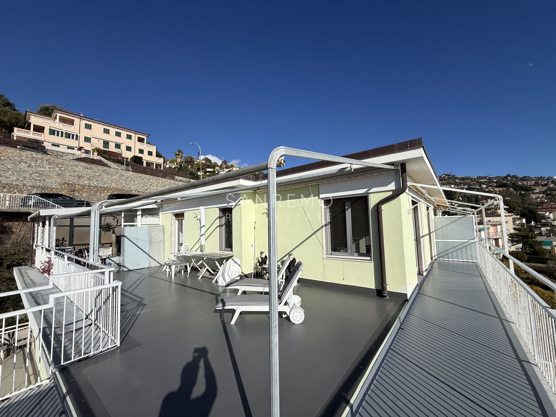 Proponiamo in vendita splendido attico situato in Ospedaletti, in posizione dominante e panoramica, con doppio ingresso: uno direttamente dal circuito e l’altro dalla strada principale, soluzione che lo rende estremamente comodo anche per chi si muove a piedi.