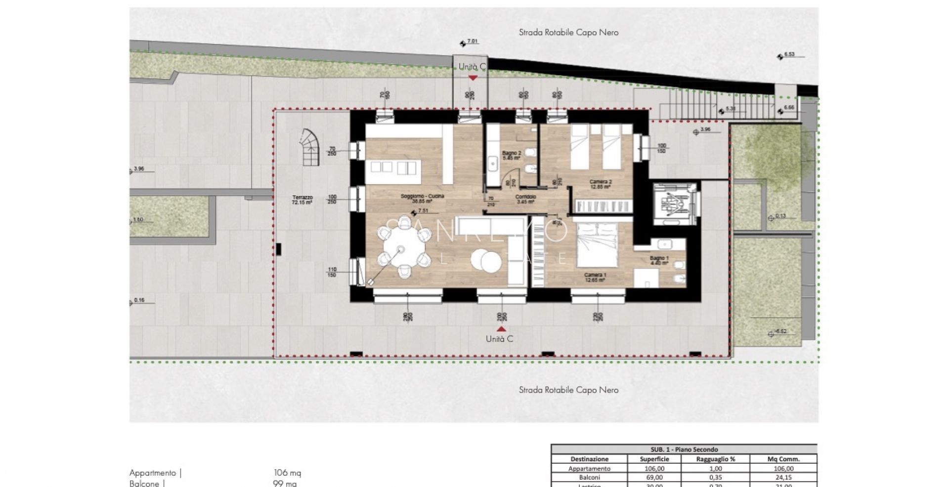 Immobile residenziale in Strada Rotabile Capo Nero con vista mare mozzafiato. Il fabbricato sarà costituito da 3 appartamenti di prestigio, ognuno unico al proprio piano, aventi una superficie interna rispettivamente di 130, 140 e 110 mq. oltre ad ampi giardini e terrazze.L’edificio, che deriva da un recupero totale di un vecchio fabbricato, sarà ovviamente antisismico e rientrerà nella migliore categoria energetica, la A4, permettendo, tra l’altro, un notevole risparmio a livello economico per quanto riguarda l’energia elettrica. E’ previsto il riscaldamento a pavimento, sistema di raffrescamento canalizzato ed ogni genere di comfort per vivere al meglio la propria casa. A completare la proposta ogni appartamento avrà un box privato di pertinenza.