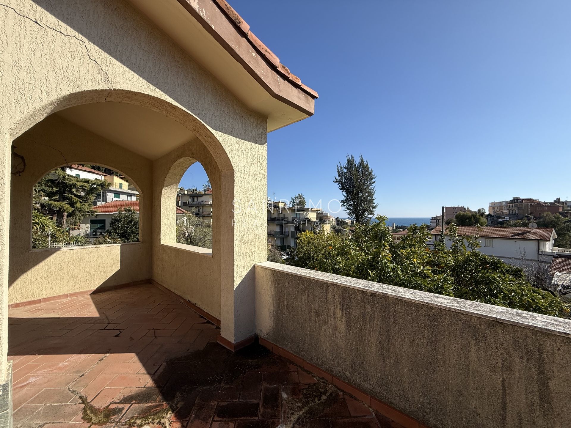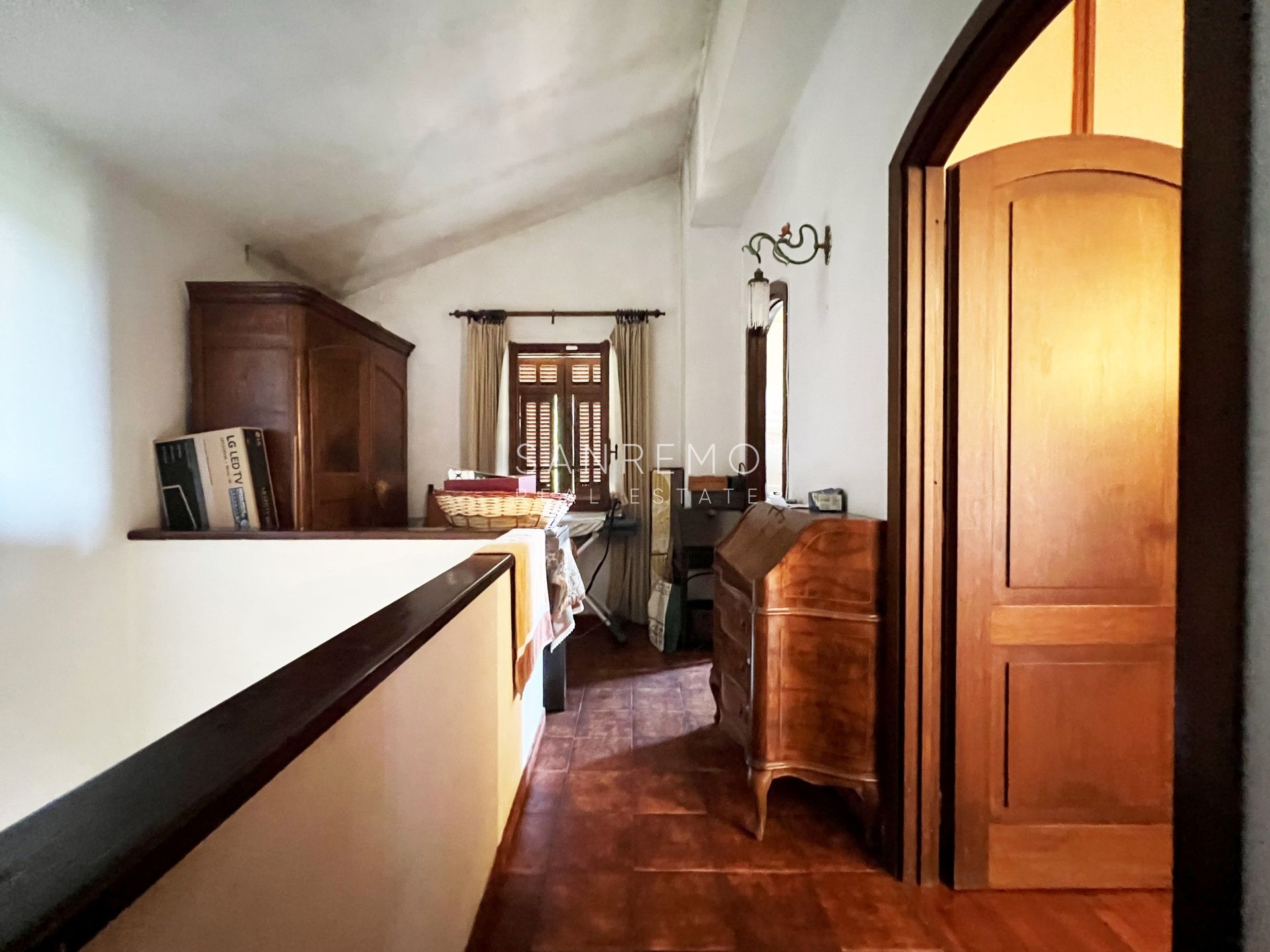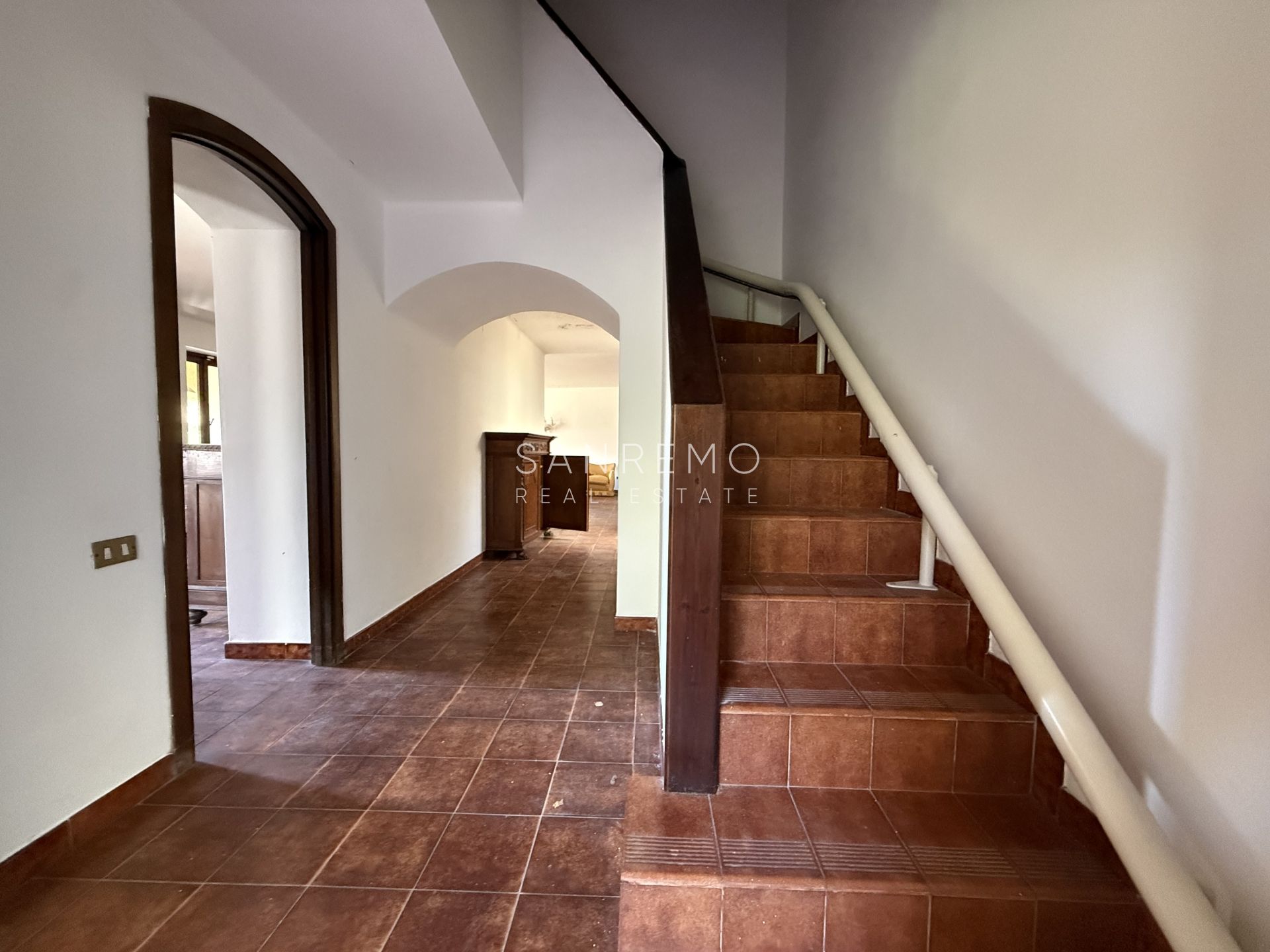 Tramite scala interna si accede al piano superiore, dedicato alla zona notte, composto da 2 camere matrimoniali, bagno, disimpegno e ampio terrazzo con vista aperta nel verde e scorcio di mare.