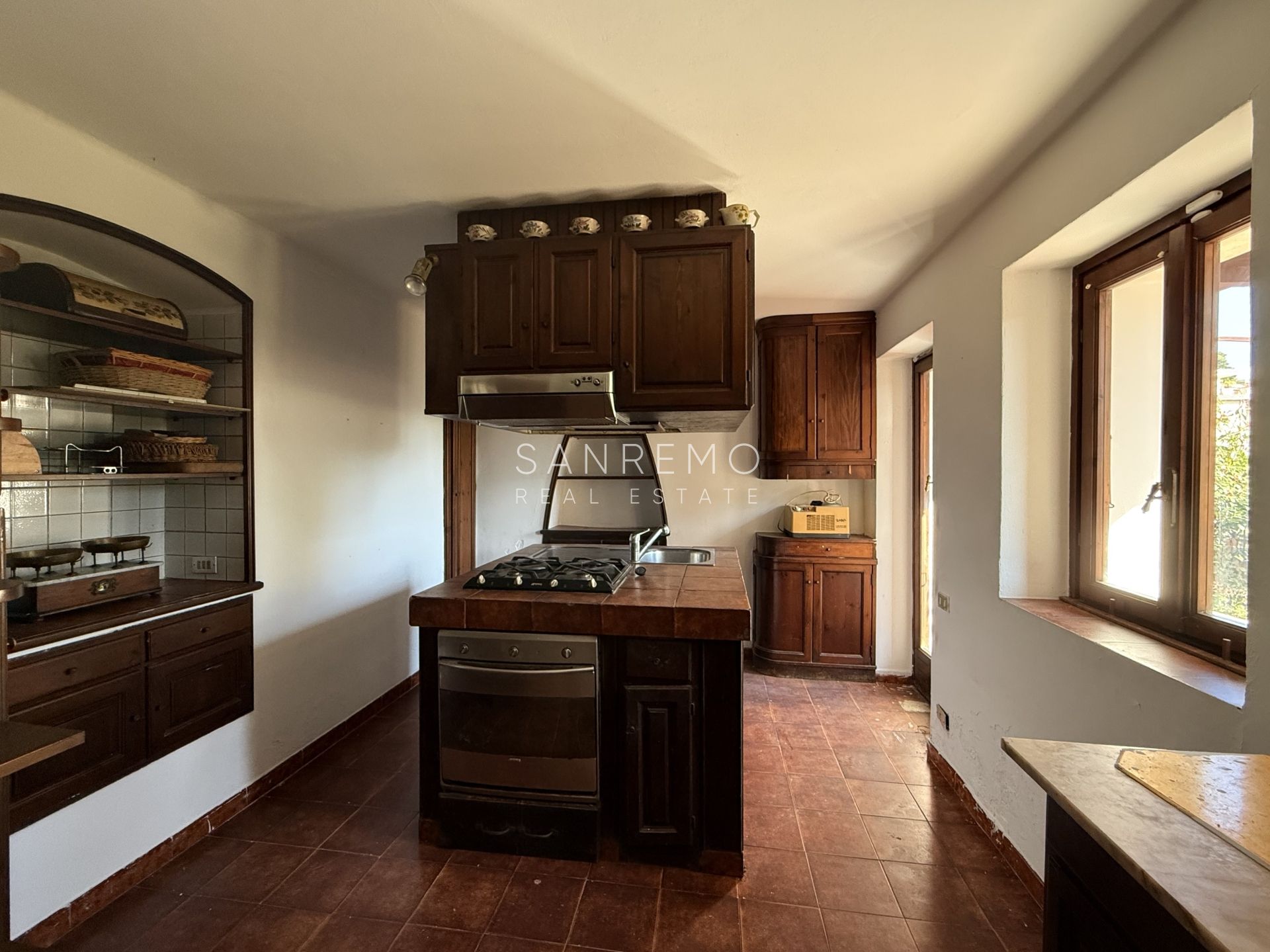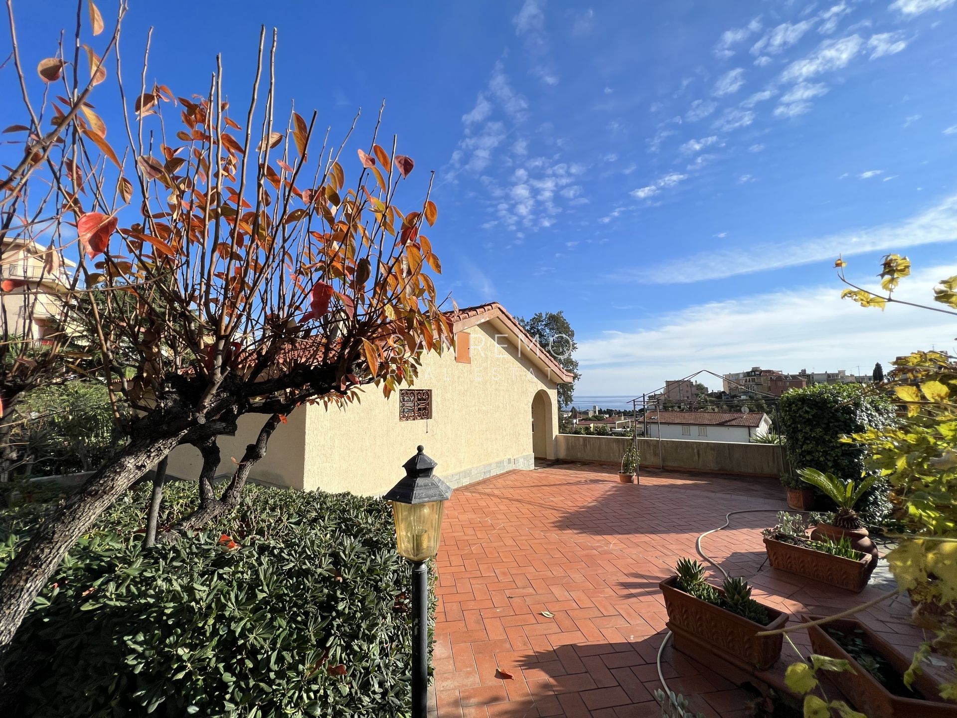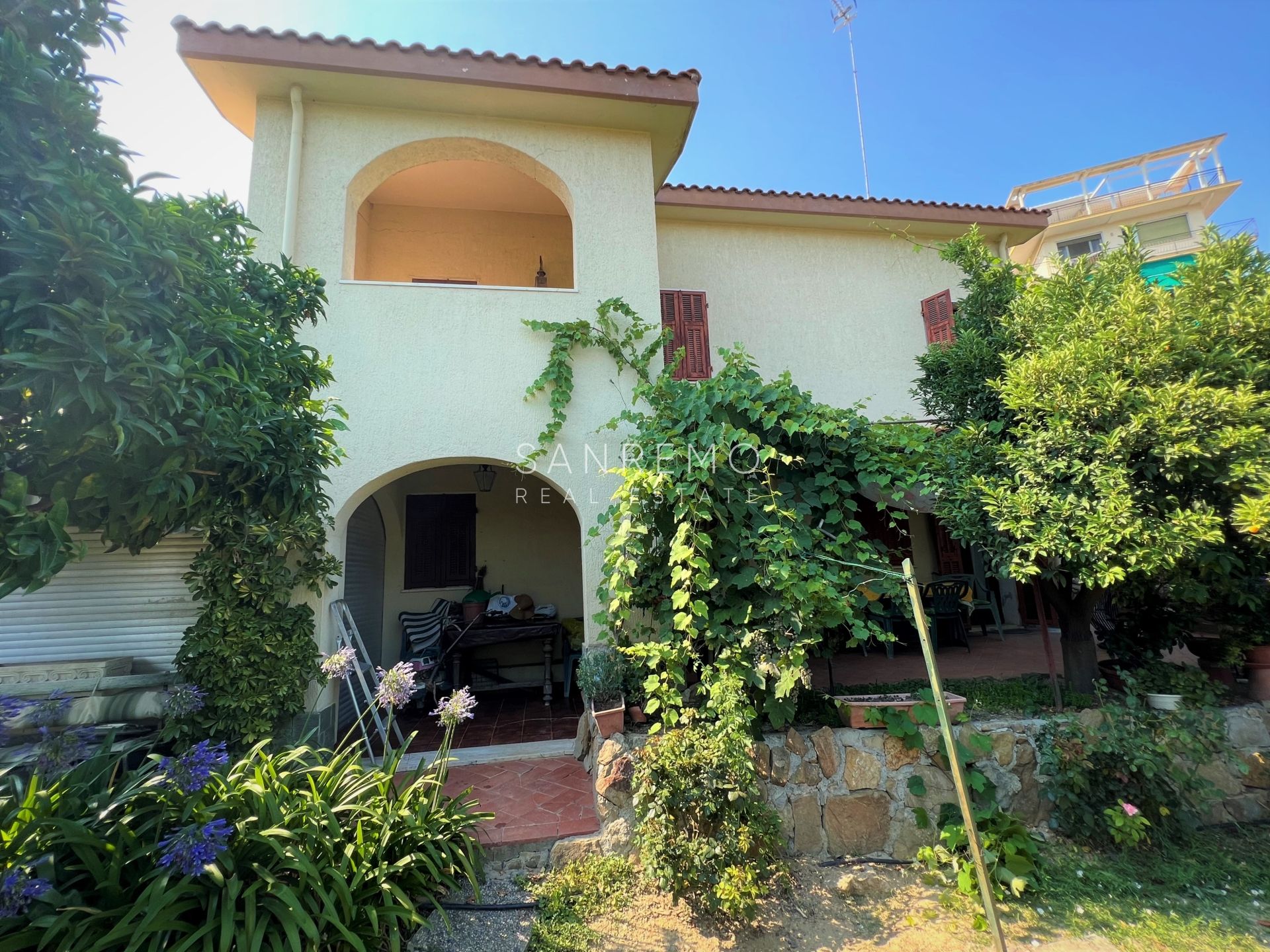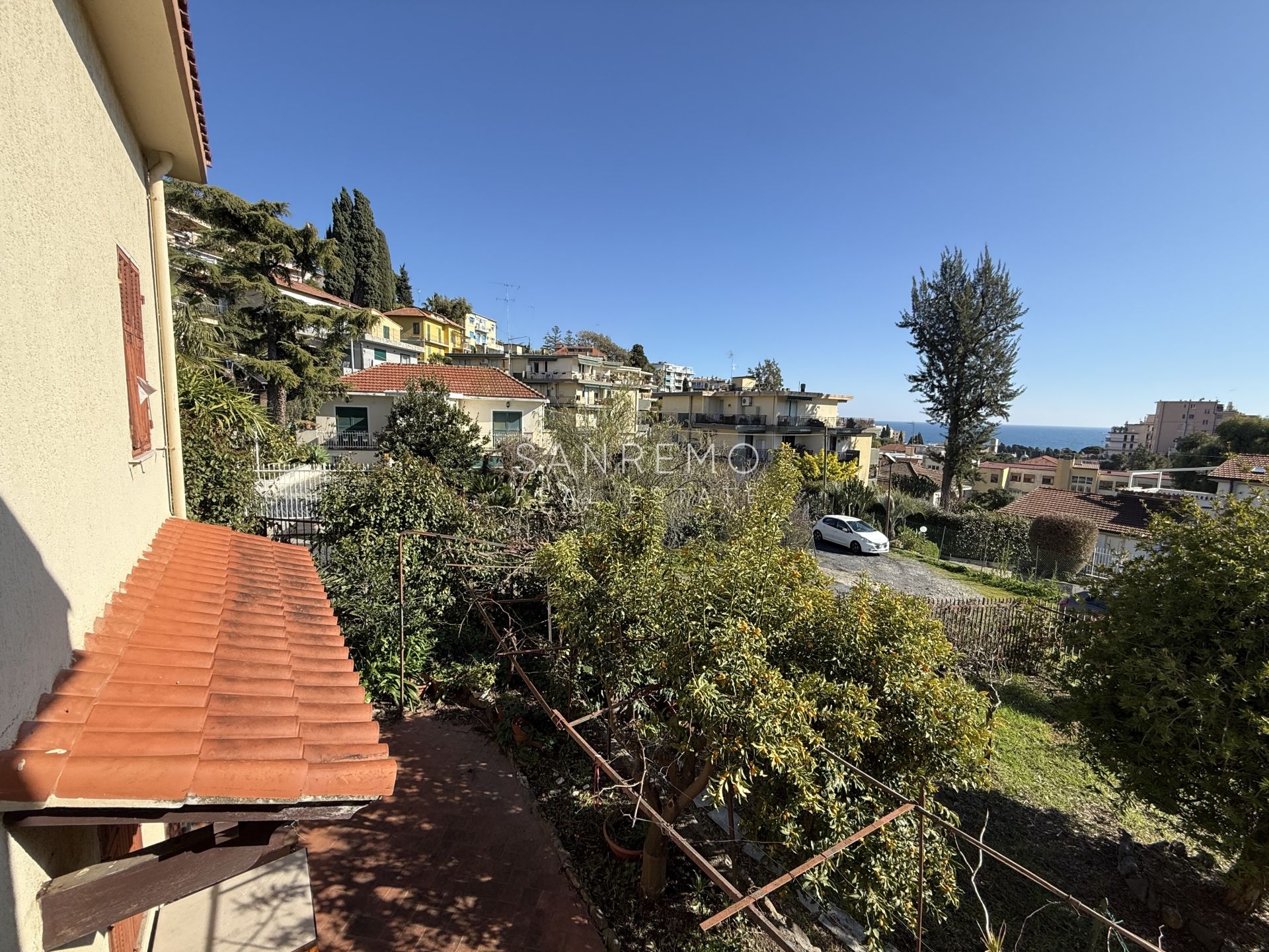 Tramite scala interna si accede al piano superiore, dedicato alla zona notte, composto da 2 camere matrimoniali, bagno, disimpegno e ampio terrazzo con vista aperta nel verde e scorcio di mare.