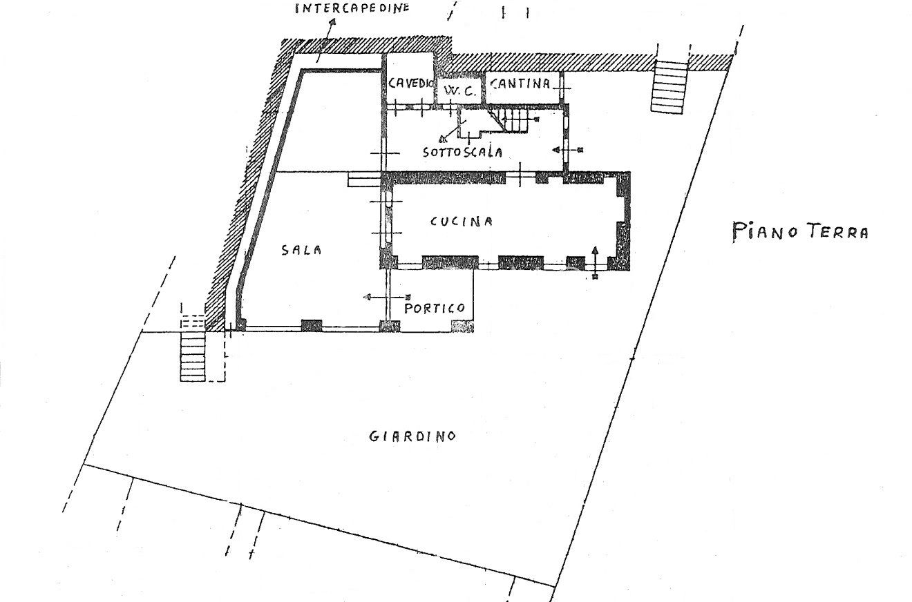 Al piano terra ci accoglie un ingresso che conduce a una luminosa sala impreziosita da ampie vetrate, un'ampia cucina a vista, bagno, portico e grande giardino privato con alberi da frutta, ideale per chi desidera vivere gli spazi esterni.